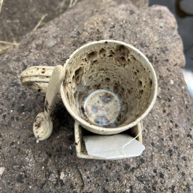 J’ai imaginé cette tasse en pensant à ce petit moment souvent négligé : que faire du sachet mouillé une fois l’infusion terminée ? Alors j’ai modelé une poche directement dans la tasse, pour l’accueillir tout simplement, sans assiette ni fuite de thé 💧