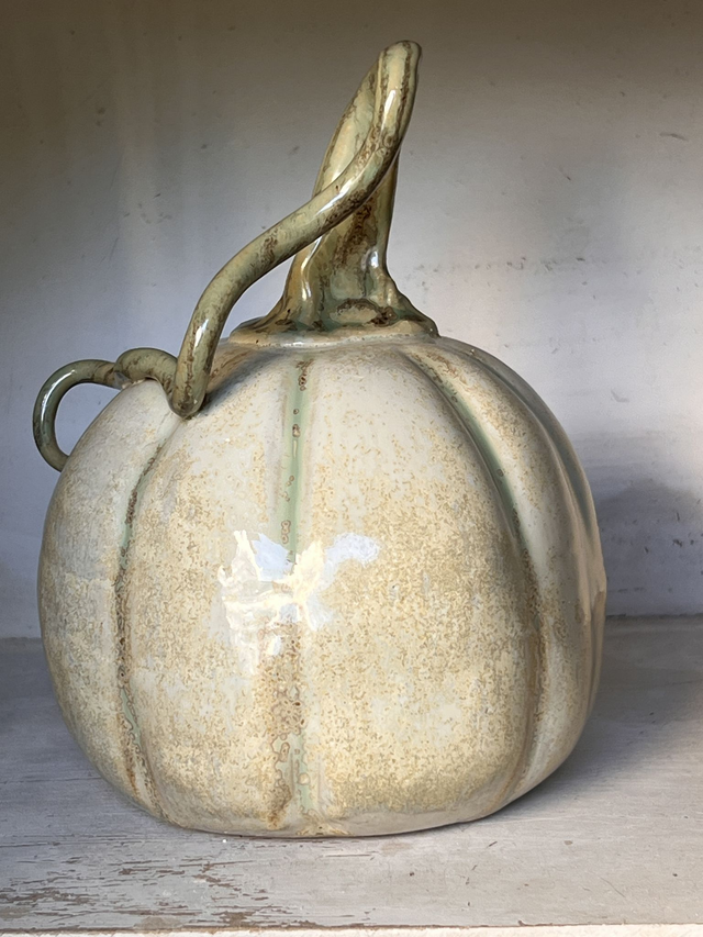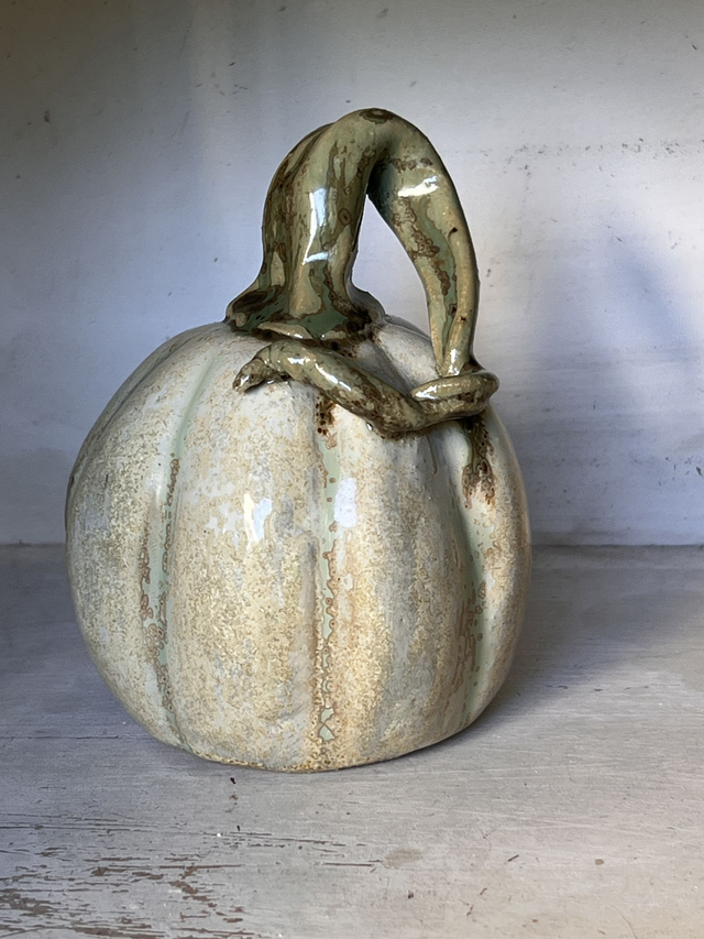 Courge décorative, mix entre le potimarron et le melon. Je l'ai volontairement émaillée dans des teintes douces et claires pour garder ce côté bohème chic. Cet objet très sobre et classe pourra décorer votre centre de table où autre meuble à toutes les saisons 🍂🍃